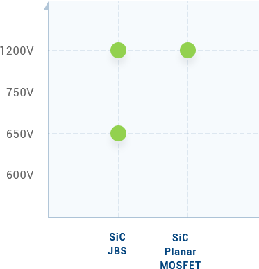 • SiC Schottky diode has high voltage resistance, high thermal conductivity and excellent reverse recovery ability. It can reduce power loss and improve system efficiency