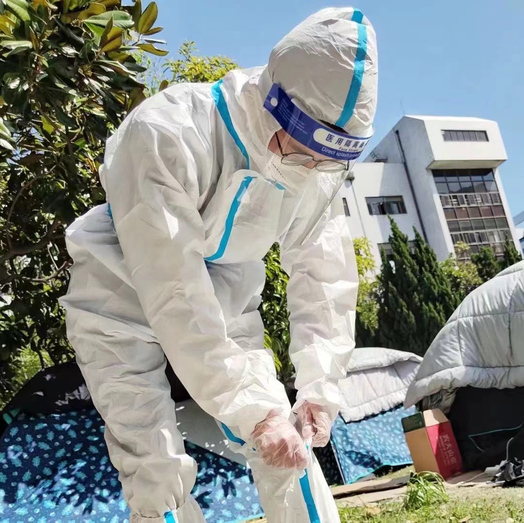 徐毅早在2020年就遞交過入黨申請書。四月以來,他作為抗疫保產(chǎn)支援突擊隊(duì)的一員,來到徐匯廠區(qū)支援抗疫保產(chǎn),召開了大量艱苦、繁重的后勤保障工作。4月10日,徐匯廠區(qū)6號房內(nèi)員工由于使用不當(dāng),致使兩個(gè)移動(dòng)廁所先后被堵塞。得知這一情況的徐毅奮勇當(dāng)前,第一時(shí)間叫上其他同事,穿好防護(hù)服、防護(hù)面具,拿上消殺工具趕往被堵塞的移動(dòng)廁所。經(jīng)過一個(gè)多小時(shí)的努力奮戰(zhàn)后,終于堵塞管道的異物用鉗子取出??纱藭r(shí)的他早已汗流浹背,防護(hù)面罩上也滿是水霧,霧水伴著汗水不停地在臉上滑落,仍然心無旁騖地繼續(xù)對四周環(huán)境進(jìn)行消殺,不放過一個(gè)死角和盲區(qū)。